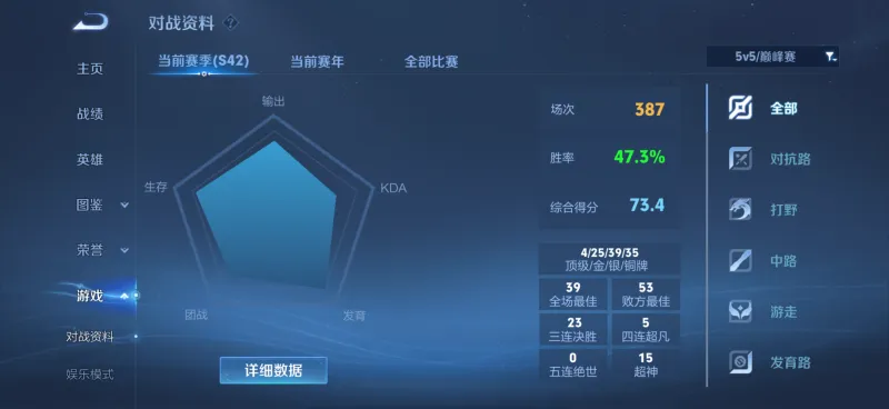 新赛季排位胜率奔着30去了,作为一个销售压力很大,游戏里还总被队友压力,感觉快抑郁了,巅峰赛相比就好打多了,和上赛季胜率一样,仅仅几十把就到了1400,胜率47也是和上赛季一样,考虑新赛季强度大,我这赛季已经是进步了,争取100场内打到1450,突破自我。新赛季排位胜率奔着30去了,作为一个销售压力很大,游戏里还总被队友压力,感觉快抑郁了,巅峰赛相比就好打多...